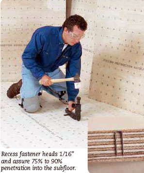 subfloor assembly. Do NOT penetrate through the bottom of the subfloor.